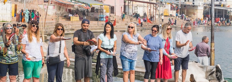 Retour à Pushkar, ville sacrée célèbre pour sa foire aux chameaux pendant la pleine lune d'octobre à novembre. Le soir, visite du lac sacré et de ses ghats, ainsi que du seul temple d'Inde dédié au dieu Brahma. Nuit à l'hôtel.