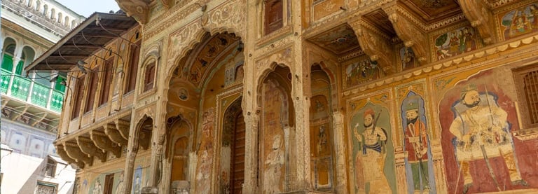 Transfert vers Nawalgarh par la région de Shekawati. Visite d'un village. Nuitée à l'hôtel.