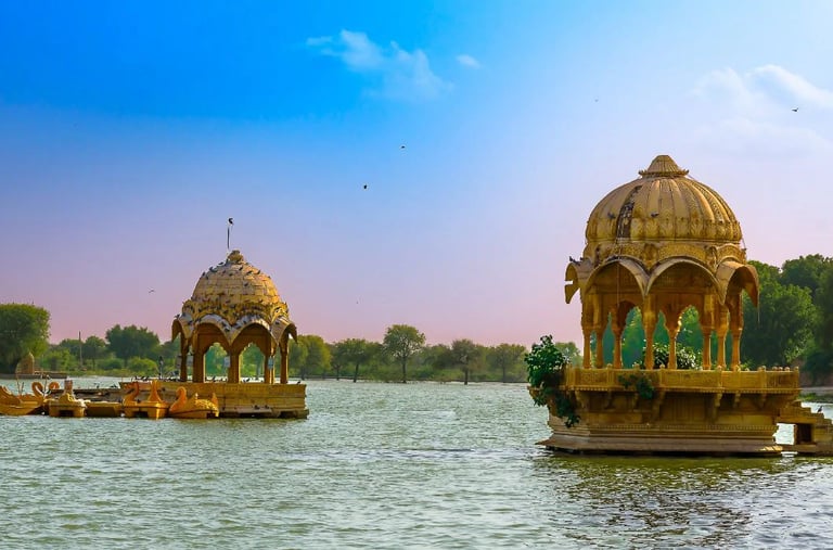 Visite matinale de Jaisalmer. Les rayons dorés du soleil couchant, les bâtiments aux couleurs vives, les forts et palais imposants, l'artisanat incroyablement fascinant et les havelis Rajput : tout cela fait de Jaisalmer une visite incontournable du Rajasthan. Une visite au fort de Jaisalmer (le deuxième plus ancien fort du Rajasthan après Chittaur), à Patwon ki Haveli (le plus grand haveli de Jaisalmer), ainsi qu'au Centre culturel du désert et aux musées vous offrira un aperçu du passé de cette petite ville. Les temples jaïns raviront vos papilles ; Salim Singh ki Haveli et Nathmal-ki-Haveli vous donneront un aperçu de l'architecture haveli de la ville. Le lac Gadsisar est également un lieu intéressant à visiter dans cette ville du désert.