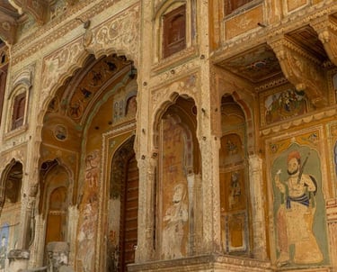 Transfert vers Nawalgarh par la région de Shekawati. Visite du village. Nuitée.