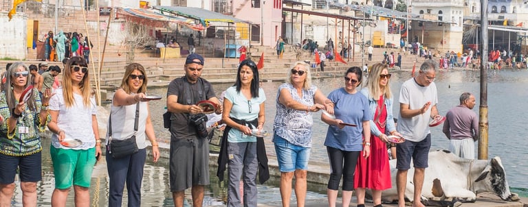 Reprise de la route pour Pushkar, ville sacrée célèbre pour sa foire aux chameaux lors de la pleine lune d'octobre à novembre. Le soir, visite du lac sacré et de ses ghats, ainsi que du seul temple d'Inde dédié au dieu Brahma. Nuit à l'hôtel.